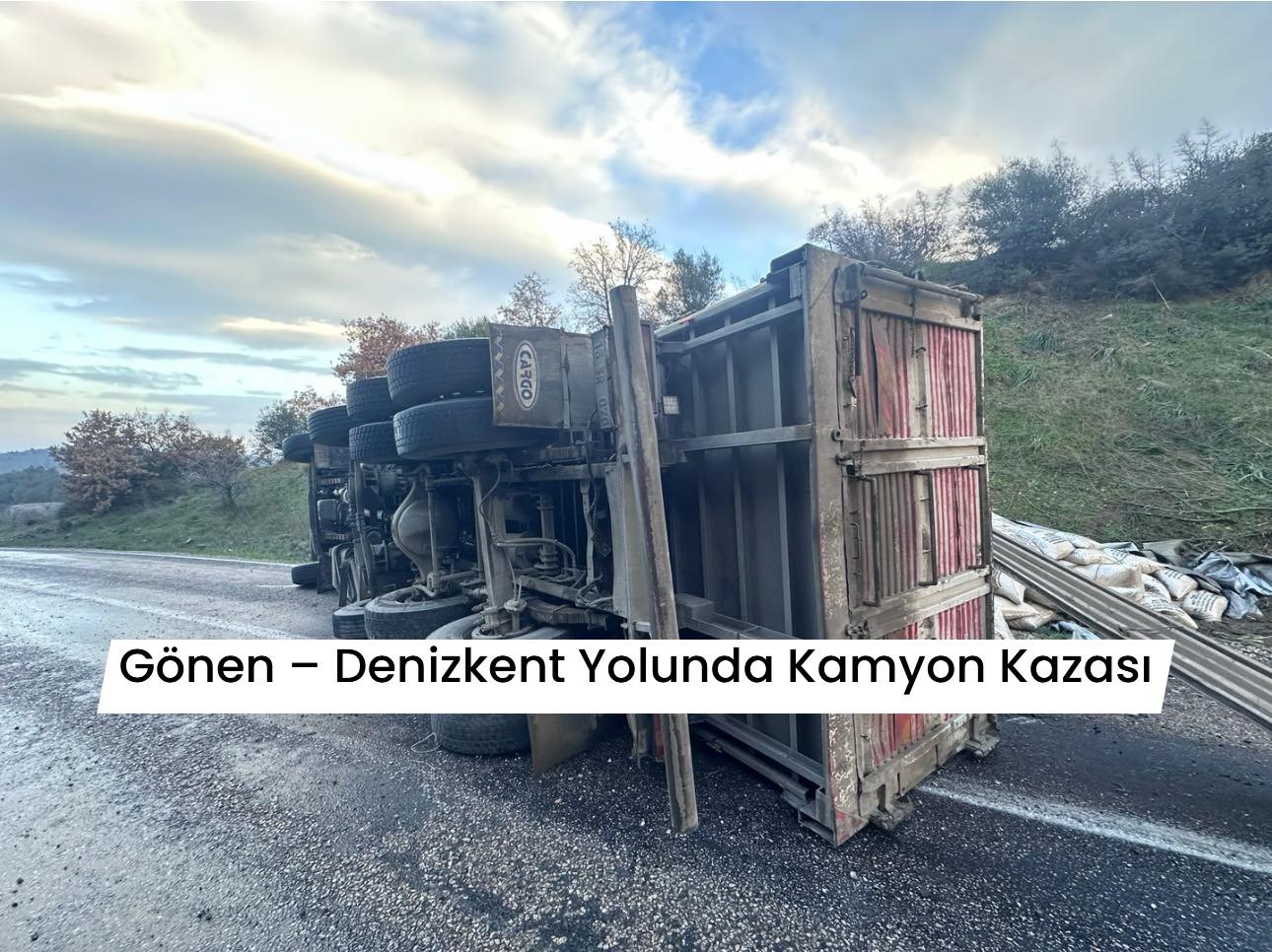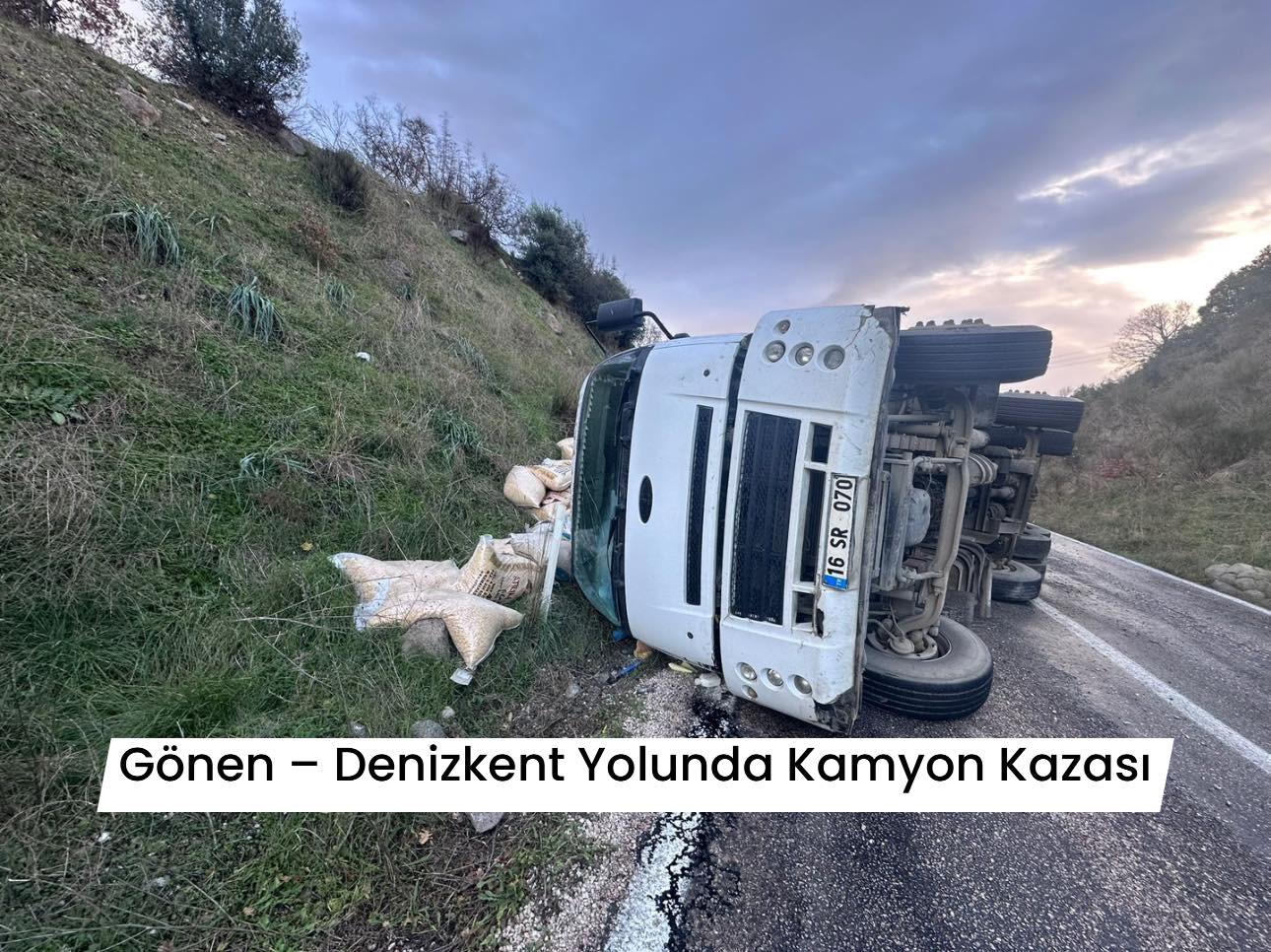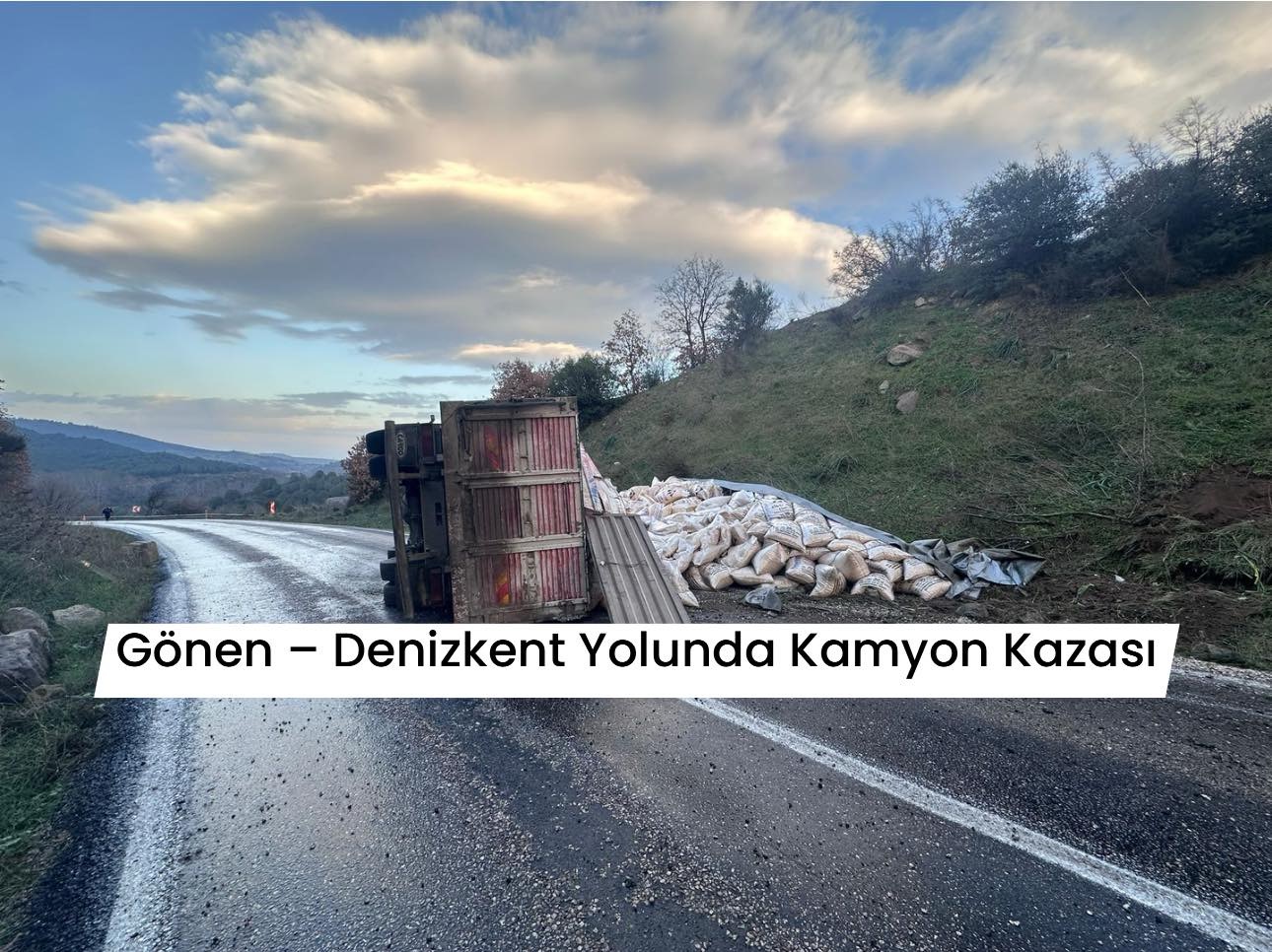 👉 Gönen–Denizkent yolu Ulukır mevkiinde, sabah saatlerinde yem yüklü bir kamyonun devrilmesi sonucu trafik kazası meydana geldi. Kazada yaralanan olmazken, araçta maddi hasar oluştu.