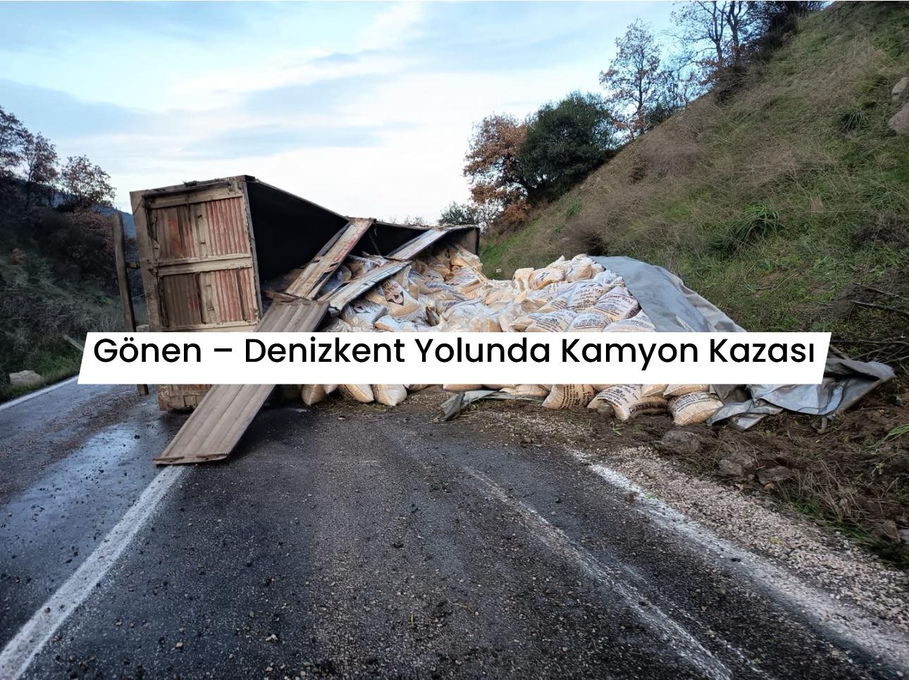 👉 Gönen–Denizkent yolu Ulukır mevkiinde, sabah saatlerinde yem yüklü bir kamyonun devrilmesi sonucu trafik kazası meydana geldi. Kazada yaralanan olmazken, araçta maddi hasar oluştu.